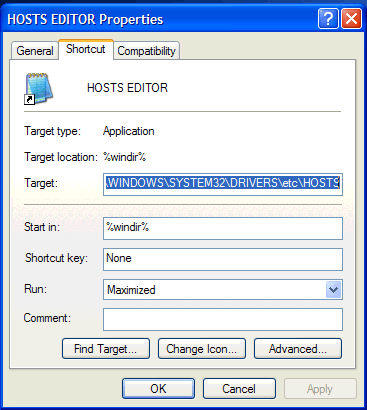 enter the location (generally) - \WINDOWS\system32\drivers\etc\HOSTS